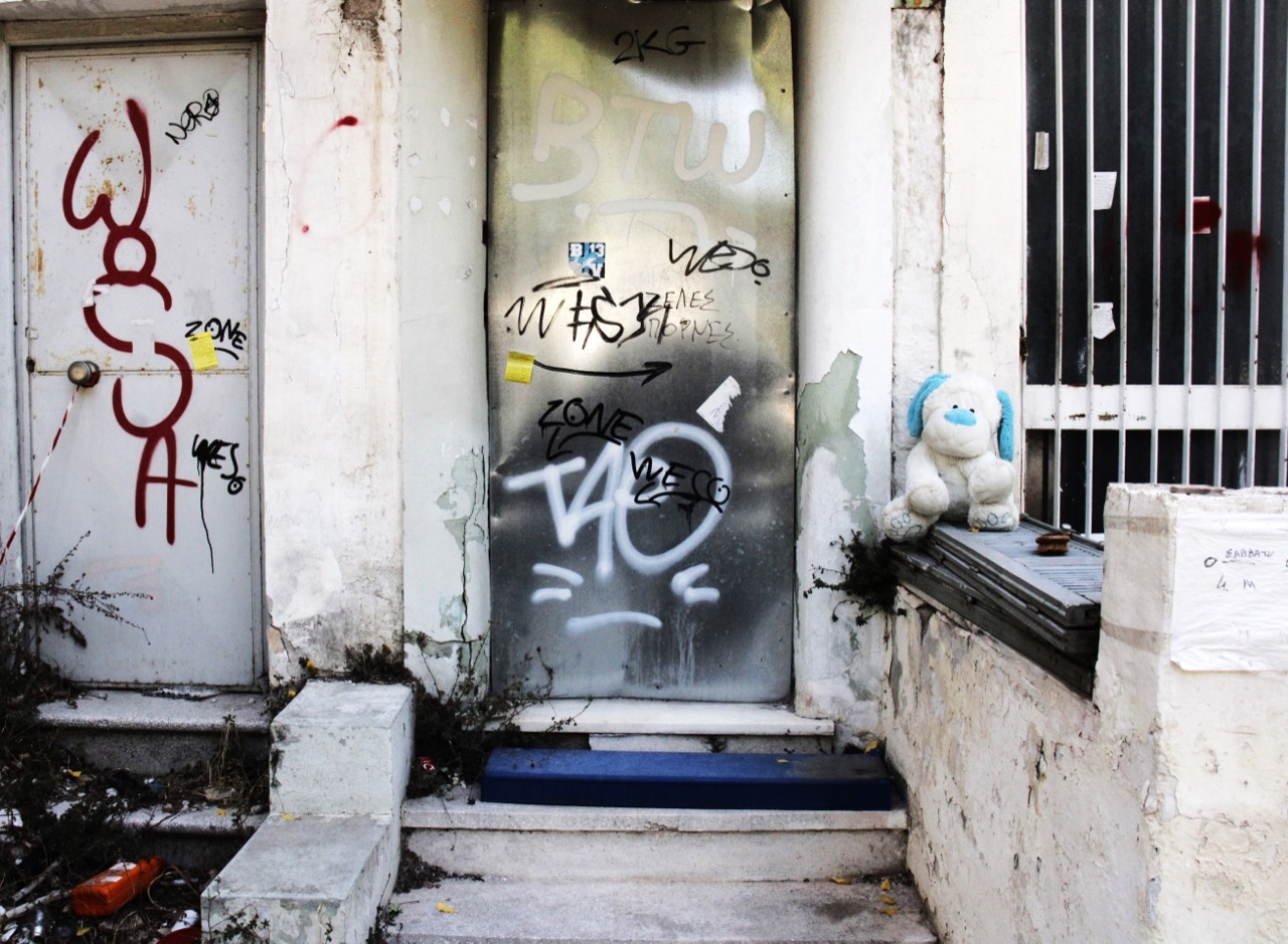 Κάτι που μ’ αρέσει πάρα πολύ στις φωτογραφικές μου εξορμήσεις είναι όταν σε κάποιο τοίχο σφραγισμένου σπιτικού βρίσκω μια τρύπα προς τα ενδότερα σκοτάδια. Προσαρμόζω το φακό της μηχανής μου στο άνοιγμα και κάθε φορά περιμένω ότι η απαθανάτιση θα μου αποκαλύψει έναν μαγικό κόσμο. Έχει πολύ να κάνει με το αθέατο, το απροσπέλαστο. Γι’ αυτό εξάλλου φωτογραφίζω σφραγισμένες πόρτες, παραθυρόφυλλά και τα λοιπά. Νιώθω πάντα πως αυτό που δεν βλέπω μπορεί να είναι μια λύτρωση την οποία δεν έχω δικαίωμα να την ζήσω και να την δω. Το ίδιο νιώθω όταν βλέπω σφραγισμένα νεοκλασικά στο κέντρο της Αθήνας. Ή π.χ. με το Μπάγκειον παλιότερα, δεν ξέρω αν ακόμη είναι κλειστό για τον κόσμο, ήξερα ότι αν έμπαινα μέσα, θα έβλεπα πράγματα και θαύματα. Μέχρι και θα γινόμουν καλά. Η επιθυμία του ανθρώπου πάντα θα έχει να μετατοπίζεται προς το απραγματοποίητο. Ώστε η ελπίδα να μην χορταίνει ποτέ, να μην δικαιώνεται και να γίνεται καημός. Ή τώρα που το σκέφτομαι καλύτερα η ελπίδα τουλάχιστον σ’ εμένα γίνεται μια αναιώνια εμμονή. Κι όσο υπάρχουν οι αθέατοι κόσμοι των σφραγισμένων σπιτιών, σύμβολα του ακατάλυτου από βλέμματα, άλλο τόσο το βλέμμα μου θα ονειρεύεται την απονενοημένη διάρρηξη του στεγανού.