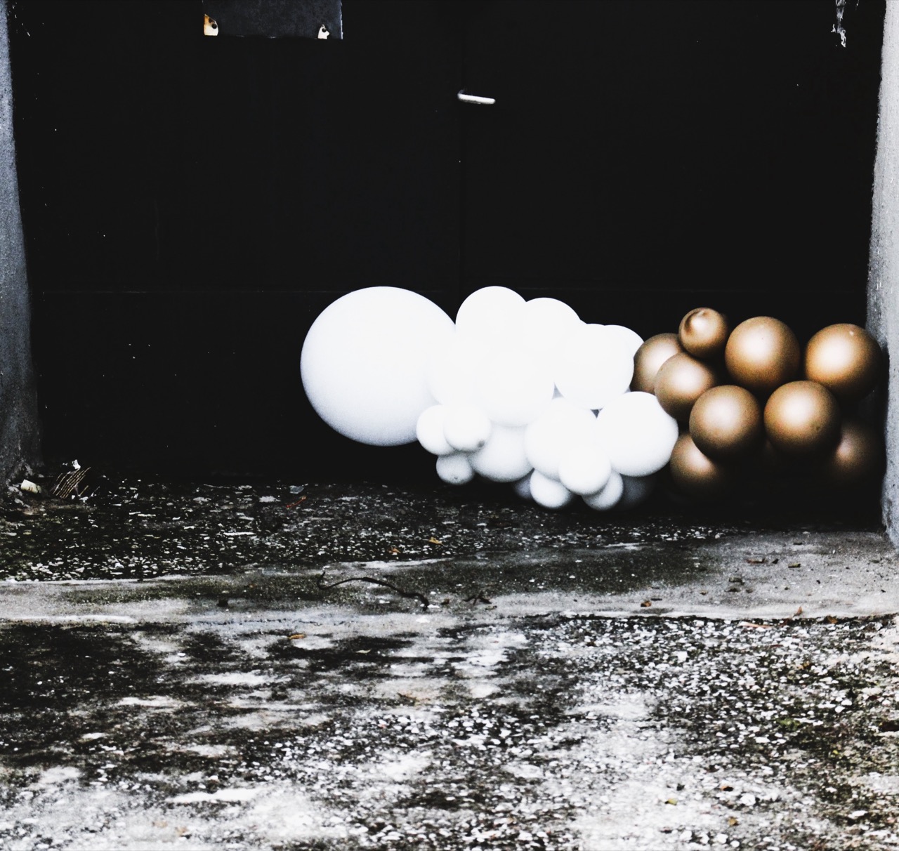 Σαν δύο ζώνες σκοτεινές, μια πάνω και μια κάτω, χωρισμένες απ’ αυτά τα μπαλόνια. Τι δουλειά έχουν μερικές νότες χαράς σ’ ένα πένθιμο εμβατήριο; Πως υπάρχουν μπαλόνια σ’ έναν διζωνικό ασφυκτικό χώρο; Η τέχνη έχει δώσει αναπαραστάσεις του ωραίου στις πιο αντίξοες γι’ αυτό (το ωραίο) να υπάρχει συνθήκες. Είναι σαν να χαμογελά ένα παιδί ενώ η πόλη του βομβαρδίζεται. Είναι όπως όταν βλέπεις μέσα απ’ το τσιμέντο να φύονται λουλούδια. Και είναι και μια προτροπή για τον άνθρωπο, κατά κανόνα σκοτεινή ύπαρξη που σώζεται απ’ τις φωτεινές εκλάμψεις της, να επιδαψιλεύει όπου μπορεί και λίγο θάμβος. Αυτή η πορεία απ’ την γέννηση ως τον θάνατο χρειάζεται παντού στασίδια για να ξεκουράζεται και να χαμογελά. Είναι στις αποζημιώσεις που δικαιώνεται το κόστος και η σπατάλη της ζωής.