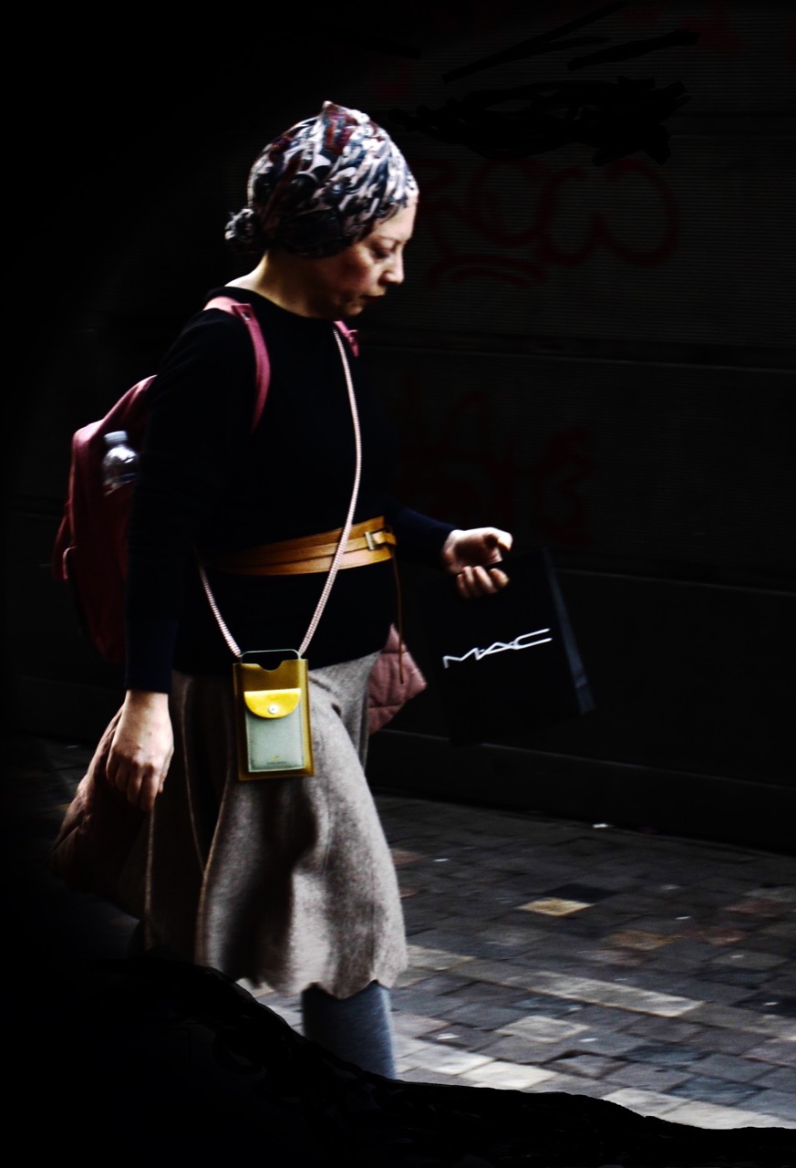 Το μοναδικό φωτεινό πλάσμα μέσα σ’ ένα σκιώδες κομμάτι στο Μοναστηράκι που είναι εγκλωβισμένο ανάμεσα σε δύο χαλύβδινης κατασκευής όγκους. Τα ανθώπινα μάτια αναγνωρίζουν πιο εύκολα το φως εκεί που ο φωτογραφικός φακός βρίσκει μόνο σκοτάδι. Το φως της απαθανατισμένης διέσχιζε το σκοτάδι όπως η μικροσκοπική ηλιαχτίδα τρυπάει το αλαμπές δωμάτιο. Είναι ο ωραίος ο ενθουσιασμός για λίγη ζωή ακόμη. Η ανηδονία του καταθλιπτικού μπορεί να τον προικίζει με σοφία, του αφαιρεί όμως τις περισσότερες συγκινήσεις του.